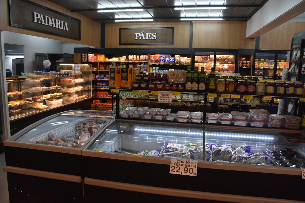 O novo espaço, com projeto pré-moldado, triplicou a área e manteve o padrão de cuidado: fruteira ampla, padaria, mercearia, produtos de limpeza, bebidas, adega, açougue e três caixas. A SulFrio participou do novo ciclo, com a implantação de equipamentos novinhos, reforçando a cadeia de frio e a qualidade da conservação.